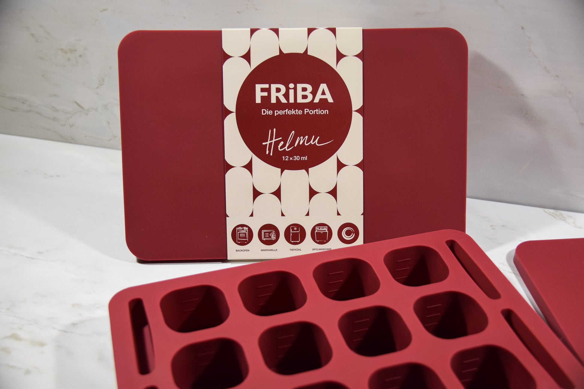 Die FRiBA Würfelform ist temperaturbeständig und flexibel einsetzbar – vom Tiefkühler bis in den Backofen.