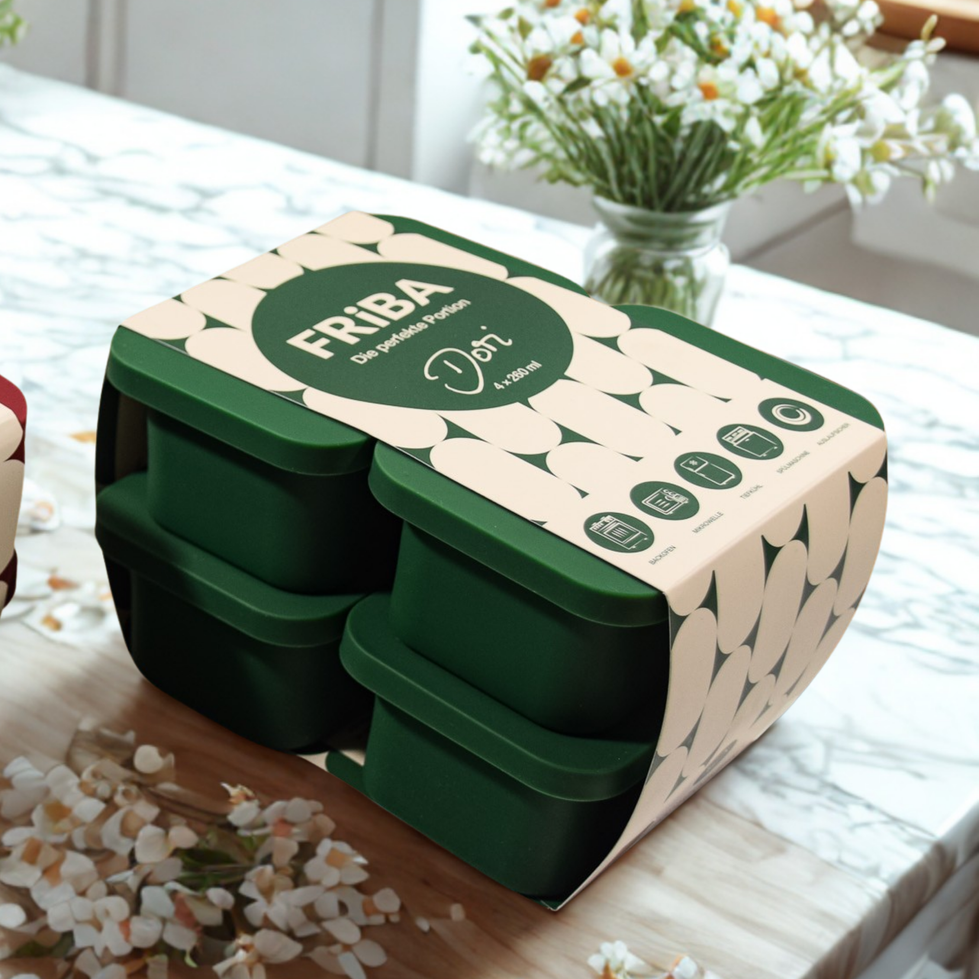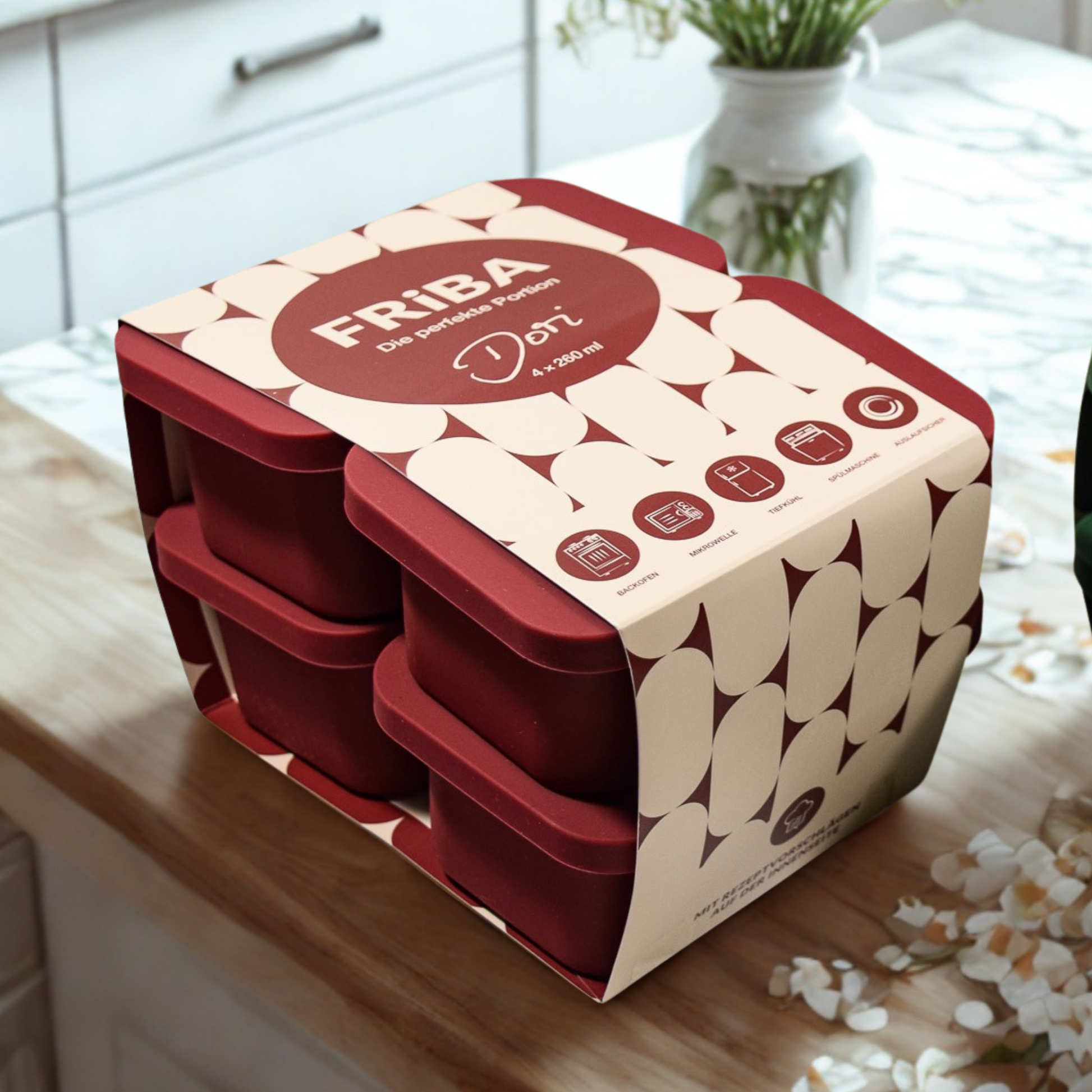 Unsere 260 ml FRiBA Formen – liebevoll „Dori“ genannt – sind inspiriert von der Küche meiner Grossmutter. Ob Babybrei, Meal Prep oder Reste vom Vortag: Mit „Dori“ portionierst du deine Gerichte perfekt und kannst sie direkt im Ofen backen, im Tiefkühler lagern oder in der Mikrowelle erwärmen – ganz ohne Umfüllen.