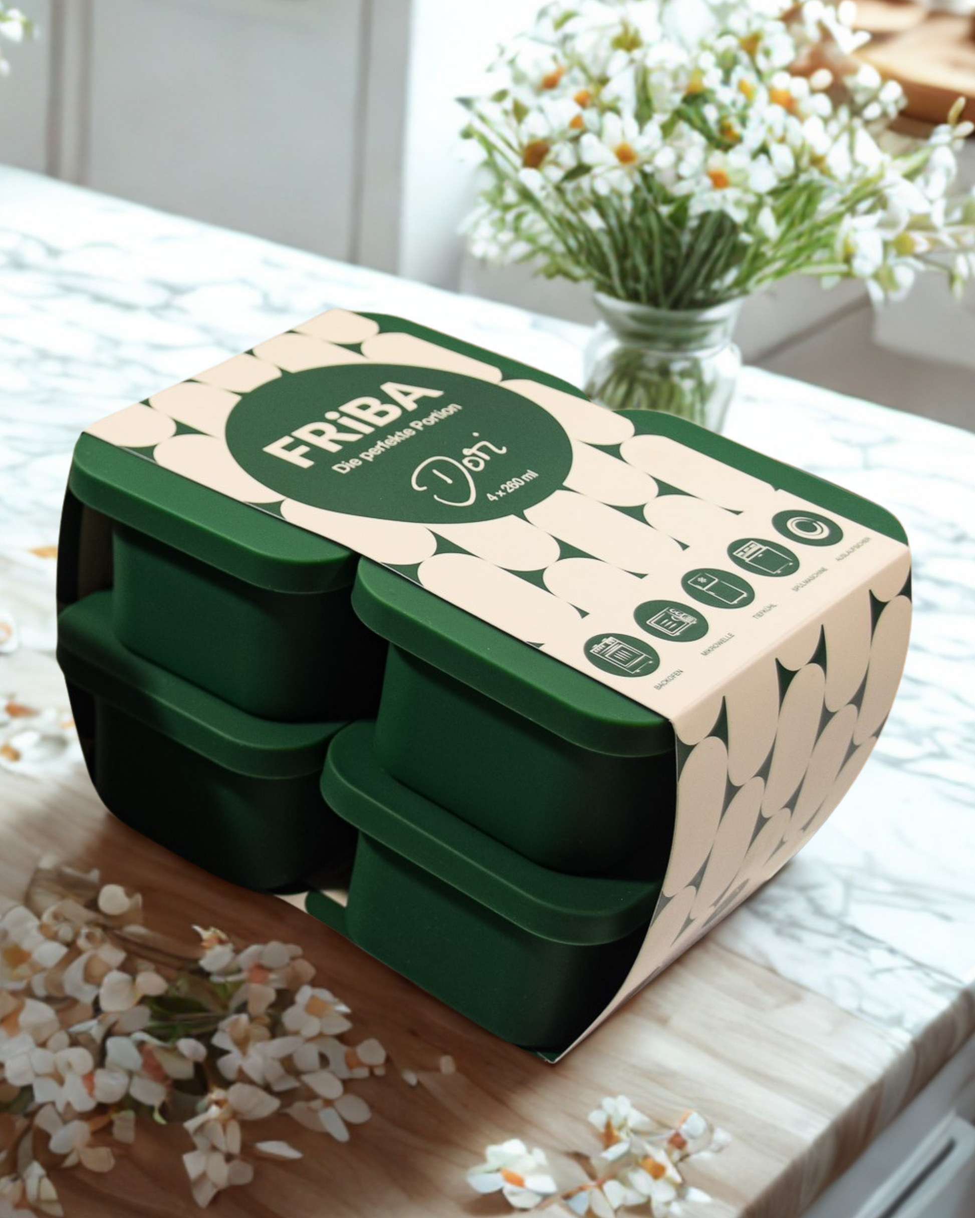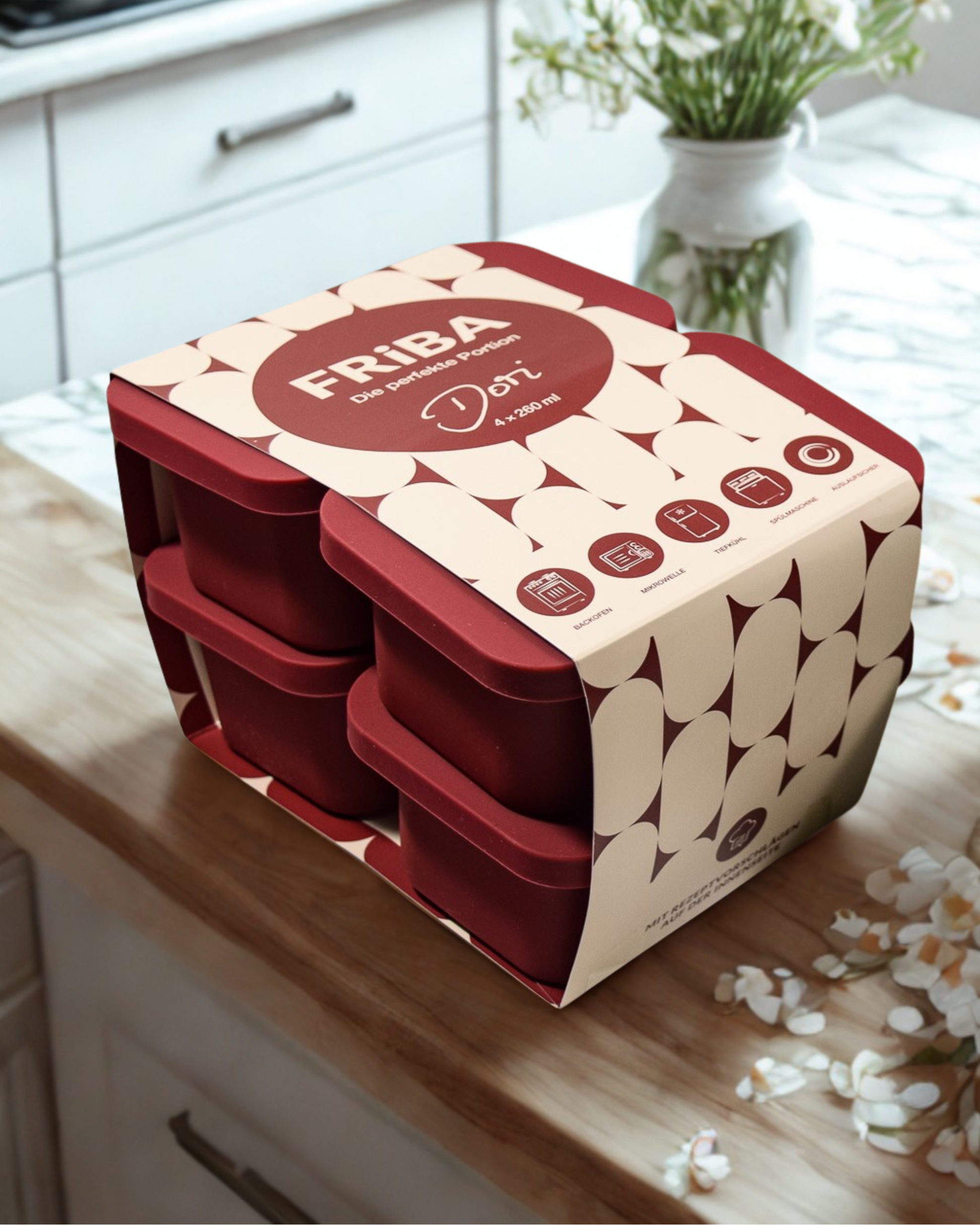 Unsere 260 ml FRiBA Formen – liebevoll „Dori“ genannt – sind inspiriert von der Küche meiner Grossmutter. Ob Babybrei, Meal Prep oder Reste vom Vortag: Mit „Dori“ portionierst du deine Gerichte perfekt und kannst sie direkt im Ofen backen, im Tiefkühler lagern oder in der Mikrowelle erwärmen – ganz ohne Umfüllen.