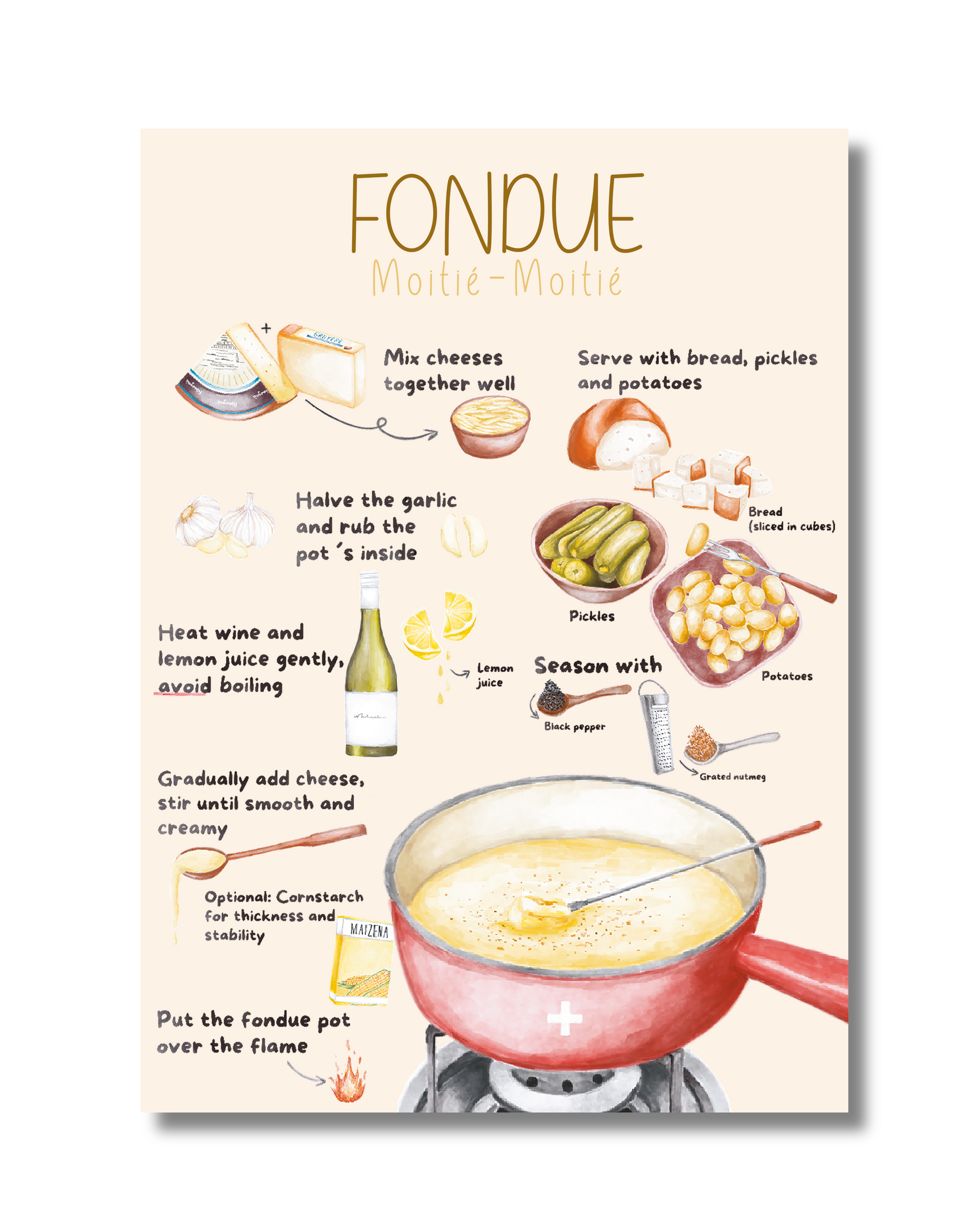 Liebevoll illustrierte Rezeptkarte für deinen Schweizer Küchenklassiker – perfekt zum Verschenken, Sammeln oder Aufhängen.