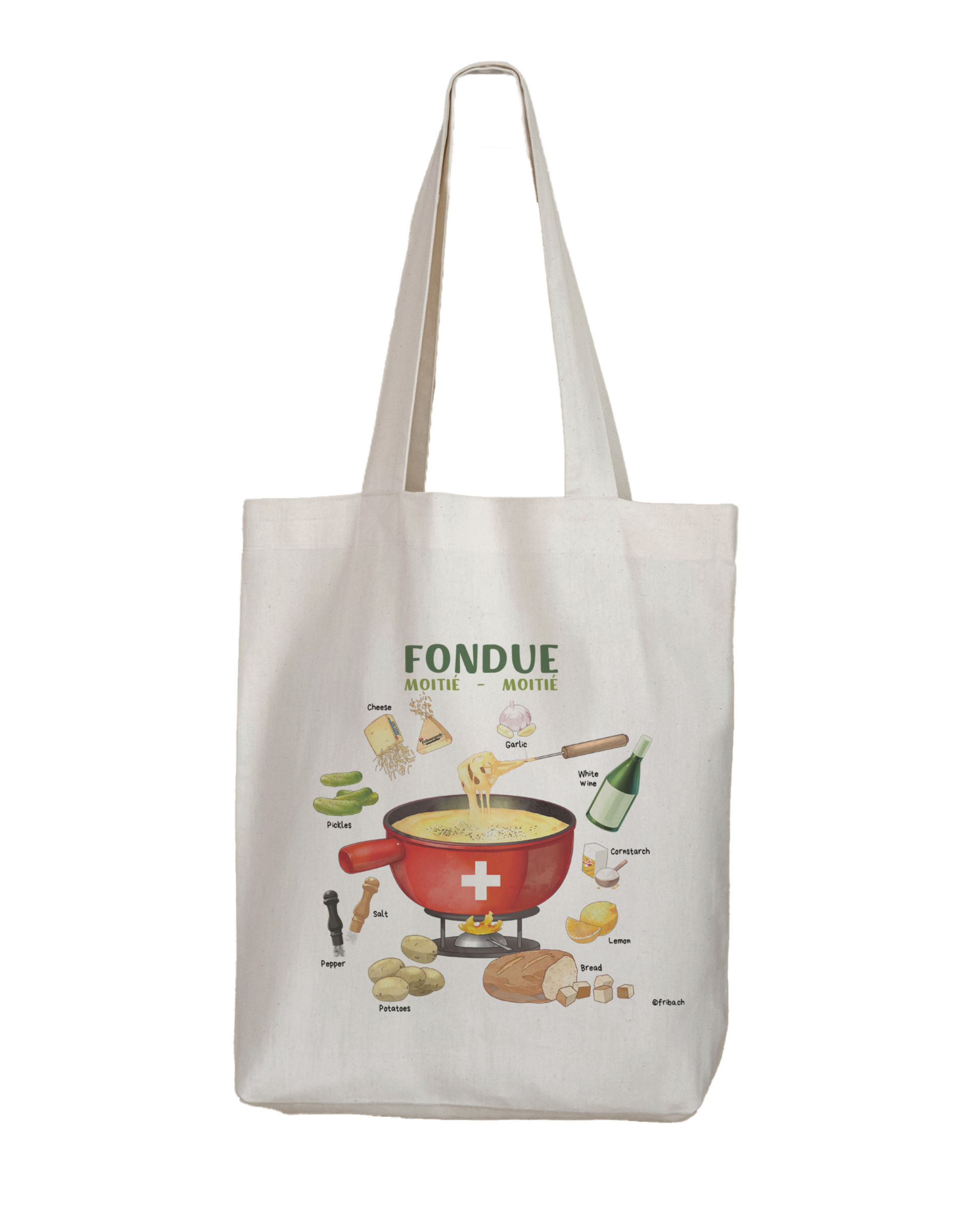 Unsere FRiBA Tragetaschen sind mehr als nur praktisch: Sie tragen Erinnerungen, Rezepte und ein Stück Schweizer Esskultur mit sich – illustriert im charmanten Chibite-Stil.